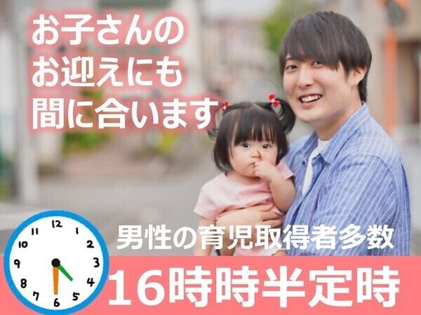 勤務時間 | 固定時間制 就業時間 8:00~16:30(実働7h/休憩1,5h) ※勤務時間変更の場合あり (例)7:00~15:30/休憩1,5h ●休憩時間 ・10:00~10:15 ・12:00~13:00 ・14:30~14:45 時間外 月平均10時間程度 |