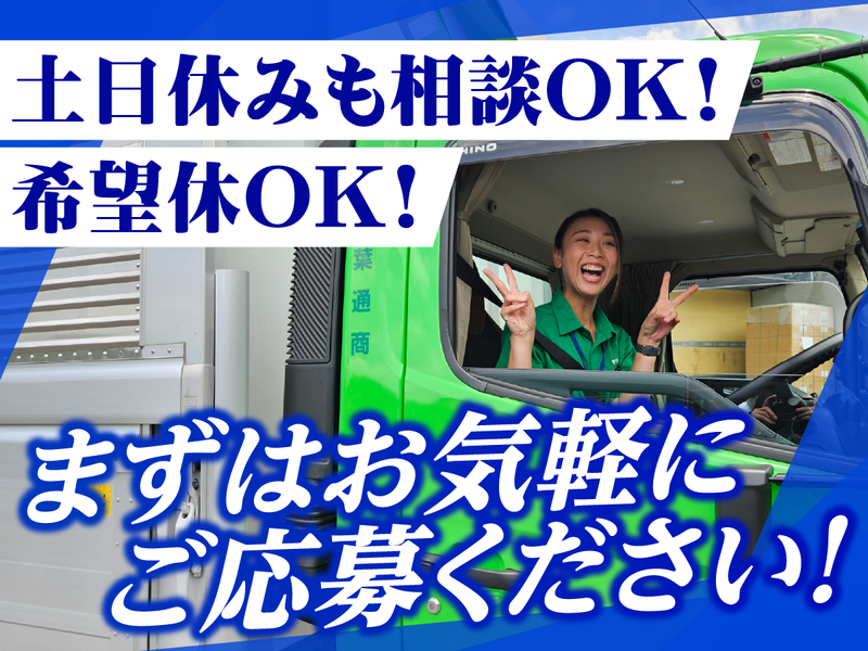 職種/仕事内容 | 仕事内容 =================== \短距離×日勤で“ムリなく稼げる”!/ =================== 地元密着の【株式会社千葉通商】で 4tドライバーを積極採用中! 経験や年齢に関わらず、 「頑張りがしっかり 給与に反映される」仕組みで 年収400万円以上も目指せます✨ □お仕事内容  ̄ ̄ ̄ ̄ ̄ ̄ ̄ ̄ ̄ ̄ ̄ 企業配送(貸切便) 4tトラックで物流センター・店舗・工場 など法人のお客様へ荷物を 配送していただきます。 <具体的には> ・荷物の積み込み (フォークリフト使用) ・配送・集荷 配送エリアは【近距離中心】で 日帰り運行・夜勤ナシの 働きやすい環境です! ✅未経験でも安心の研修制度  ̄ ̄ ̄ ̄ ̄ ̄ ̄ ̄ ̄ ̄ ̄ 入社後は1~3ヶ月間の 同乗研修があります! 先輩ドライバーがマンツーマンで サポートします。 荷物の積み方、ルートの回り方まで 一つずつ丁寧に教えますので 未経験の方も安心して始められます。 ✅頑張りが給与にしっかり反映!  ̄ ̄ ̄ ̄ ̄ ̄ ̄ ̄ ̄ ̄ ̄ ・配送件数に応じて収入UP ・安全運転・マナー評価手当あり ・役職手当・決算賞与あり 「配達量が増える=収入が増える」 明確な仕組みで、日頃の頑張りが しっかり給与に返ってきます! ✅希望休も柔軟に対応!  ̄ ̄ ̄ ̄ ̄ ̄ ̄ ̄ ̄ ̄ ̄ 「子どもの行事で休みたい」 「平日+日曜で連休を取りたい」 「この日はお休みしたい!」など 希望休の相談は気軽にOK! 土日休みや連休取得も可能なので、 プライベートを 大切にしながら働けます。 ✅安定企業で安心勤務  ̄ ̄ ̄ ̄ ̄ ̄ ̄ ̄ ̄ ̄ ̄ 千葉・茨城を中心に13拠点展開、 トラック250台以上を 保有する安定企業です。 ◎月7,000円分の食事補助 (ICカード支給) ◎賞与あり ◎仲間同士で支え合う チームワークの良さも魅力です。 ✅こんな方にもピッタリ!  ̄ ̄ ̄ ̄ ̄ ̄ ̄ ̄ ̄ ̄ ̄ □ 短距離で毎日帰宅したい □ コツコツ頑張ってしっかり稼ぎたい □ 家族やプライベートの 時間も大切にしたい □ 安定企業で長く働きたい 「ドライバーの仕事は続けたいけど、 無理のない働き方がしたい」 そんなあなたにピッタリの環境です。 まずはお気軽にお問い合わせください! あなたのご応募をお待ちしています✨ ■■■■■■■■■■■■■■■■■■ 応募やお問い合わせは下記番号まで お気軽にご連絡ください♪ ☎TEL:0479-82-6583 ■■■■■■■■■■■■■■■■■■ |