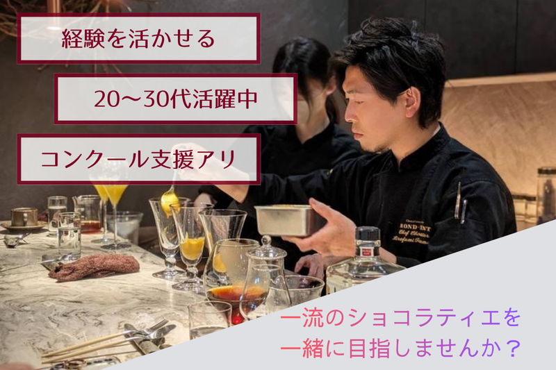 対象となる方 | 求めている人材 【必須条件】 ◆パティシエの実務経験がある方 ※経験年数不問です。 ◆コミュニケーション能力がある方 ◆洋菓子製造の基本技術を習得している方 ↳*パティシエ業界の材料・専門用語の理解 *絞り *ナッペ *パイピング *L字パレットでの生地の延し *フォンサージュ *クッキー成形 *ケーキカット など 本気で学びたい人には、 惜しみなく技術も環境も用意しています。 未経験から当社で働きたい方は、 まずはご相談ください! 「もっと自由に練習できたら」 そんな気持ちに応えます! 本来は長い下積みが必要な チョコレートの技術を 仲間と切磋琢磨しながら 早い段階から身に着けていける環境です✨ ◤ ̄ ̄ ̄ ̄ ̄ ̄ ̄ ̄ ̄ ̄ ̄ ̄ ̄ ̄ ̄ ̄ ̄ ̄ ̄ こんな方なら大歓迎です! ___________________◢ ◆チョコレートに本格的に関わりたい ◆ボンボンショコラや飴細工などを学びたい ◆将来的に独立したい ◆本場フランスで修行がしたい ◆フランスの有名店での勤務を目指している ◆コンクール出場に興味がある方 ◆しっかりと技術を高めていきたい方 厨房・販売を問わず、 20〜30代が中心となって活躍中。 女性スタッフの割合が多く、 年齢や役職に関係なく話しやすい雰囲気です! 厨房チームは、 シェフ・スーシェフ含めて4〜5名体制。 全員が役割を分担しながらも、 柔軟に助け合えるチームワークが強みです◎ 自由練習や作品作りも歓迎されており、 「パティシエとしてもう一歩踏み出したい」 そんな方にとって、最高の環境です! |