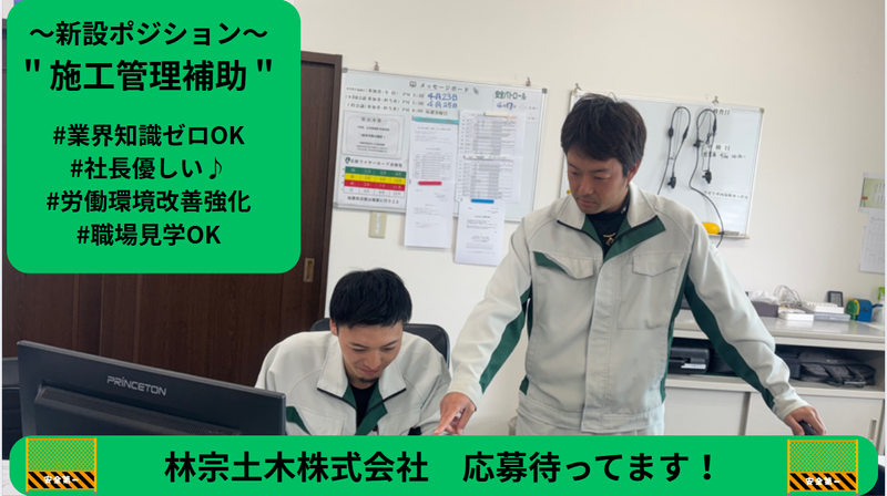 対象となる方 | 求めている人材 ※スキル・経験・資格は問いません  ̄ ̄ ̄ ̄ ̄ ̄ ̄ ̄ ̄ ̄ ̄ ̄ ̄ ̄ ̄ ̄ ̄ ̄ ̄ ✅異業界からの転職者も多く活躍中♪ └公務員や一般事務、営業職経験者も多数! ✅施工管理技士を目指す方歓迎 ✅手に職をつけたい方 ✅働き方を大きく変えたい方 └勤務時間・将来性・スキル ◇こんな方に来てほしい◇  ̄ ̄ ̄ ̄ ̄ ̄ ̄ ̄ ̄ ̄ ̄ ̄ ̄ ̄ ̄ ̄ ̄ ̄ ̄ ■コミュニケーション力を発揮できる方 ■チームワークや柔軟性を大切にできる方 ■報告・連絡・相談が適切に行える方 ■粘り強く業務に挑める方 ■社会貢献に意欲がある方 ☑PC操作に抵抗のない方 (Excel・Word) 【異業界からの転職者も多数在籍】  ̄ ̄ ̄ ̄ ̄ ̄ ̄ ̄ ̄ ̄ ̄ ̄ ̄ ̄ ̄ ̄ ̄ ̄ ̄ #公務員 └警察官 └消防士 └森林作業員 └水道局職員 #営業職経験者 └不動産 #内勤経験者(外勤未経験) └一般事務 └総務 #サービス業経験者 └飲食店スタッフ └美容師 └イベントスタッフ #IT業界経験者 └SE経験者 年齢の条件と理由:あり(例外事由1号・65歳未満(定年のため)) |