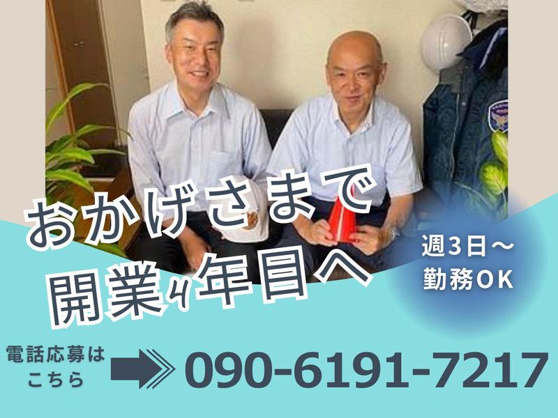 職種/仕事内容 | 仕事内容 << オススメPoint!! >> ■週3日~勤務OK!プライベートと両立◎ ■バイク通勤OK×直行直帰OK♪ ■早上がりの場合も日給保障で安心! ◤ ̄ ̄ ̄ ̄ ̄ ̄ ̄ ̄ ̄ ̄ ̄ ̄ ̄ ̄ 電話応募も大歓迎!! ▶TEL/090-6191-7217(武居) ______________◢ 【仕事内容】 住宅地の歩行者への声掛けや工事現場の 車両誘導などの交通誘導をお願いします。 事故が起きないよう、車両や歩行者の方の 誘導をお願いします。 住宅街の中での工事現場も多いので、 「こんにちは」「お気をつけて」 「どうぞ、通ってください」など、 笑顔での声掛けもお願いします。 交通誘導の現場は車の通りが少なく、 比較的落ち着いた現場です♪ 開業から4年目なので、一緒に会社を 作っていきたいと考えています。 仕事量も豊富で、業務拡大につき 新規スタッフを大募集です! ∥∥∥∥∥∥∥∥∥∥∥∥∥∥∥∥∥∥∥∥ ★1日の流れ(例)★ 09:00 担当エリアで警備開始 10:00 休憩 12:00 昼休憩(1時間) 15:00 休憩 18:00 現地解散、1日お疲れ様でした! ※直行直帰OK |