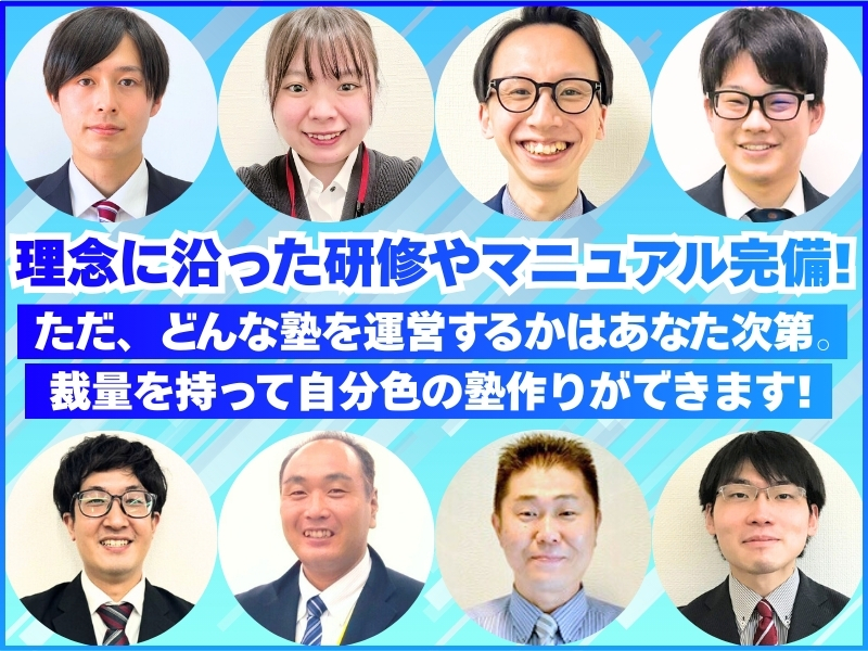 職種/仕事内容 | 仕事内容 / 教育現場での学習指導の 経験者を募集しています! \ ╭――――――――――――╮ ⭐面接ではぜひ あなたの教育に対する お考えをお聞かせください ╰――――――――――――╯ ┏ ━━┅━━━━━━━┅━━ ┓ 【✅企業理念】 努力することの大切さを伝える ……………………………………… 企業のための "利益"や"実績"ではなく 生徒・保護者様のための "教育"を追求し提供するために 代表/中野は当塾を立ち上げました。 当塾の運営方針は 「努力することの大切さを伝え、 生徒の力を伸ばすこと。」 その一点のみです。 ┗ ━━┅━━━━━━━┅━━ ┛ ▼【自分を大切にできる環境】 ✅《ノルマはありません》 ✅《意見を反映できる裁量》 ✅《残業月10時間以下》 ✅《フレックスタイム制》 ✅《多くの教室で複数社員体制》 ▼【成果に対する明確な還元】 ⏩教室利益の《20%を賞与に還元》 ⏩5年連続で《特別賞与支給あり》 ⏩業務への《フィードバック》あり ⏩《早期キャリアアップ》実績多数 \ \ // // ▽設立以来12期連続▽ 売上拡大中 地域No,1の教育機関へ - - - - - - - - - - - - - 2026年度中に100教室 生徒数10,000名を 目標としています! / / // \\ <仕事内容> 小・中・高校生対象 1:2~4の個別指導塾の運営業務 ■生徒募集のための活動 ■生徒への個別学習指導 ■保護者様への入塾案内・定期面談 ■アルバイト講師のマネジメント ■カリキュラムの作成 等 当塾に通うのは平均点前後の 成績の方がほとんど。 ひとりひとりの課題に合わせた 指導を行っていただきます。 ⭐ノルマはありません  ̄ ̄ ̄ ̄ ̄ ̄ ̄ ̄ ̄ ̄ ̄ ̄ ̄ ̄ ̄ 教室の運営目標は自己申告制。 生徒・保護者様にとって、 本当に必要なものを提供するため 売上や実績ノルマは設けていません。 ⭐裁量を持って行える教室づくり  ̄ ̄ ̄ ̄ ̄ ̄ ̄ ̄ ̄ ̄ ̄ ̄ ̄ ̄ ̄ ●学習指導と運営業務のバランス ●新規開校のためのエリア・物件選定 ●運営体制のブラッシュアップ etc... あなたが実現したい取り組みは 真摯に伺い、相談を行います。 当社は完成していない成長中企業です。 あなたのご意見や発信が 弊社の血肉となると考えています。 ⭐成果を明確に評価し還元  ̄ ̄ ̄ ̄ ̄ ̄ ̄ ̄ ̄ ̄ ̄ ̄ ̄ ̄ ̄ ★入社時の《給与は前職考慮》 ★教室利益の《20%を賞与原資》として還元 ★入社2ヶ月で《教室責任者》就任 ★入社3年目で《エリアマネージャー》昇格 ★役職に応じた手当あり! ┗教室長:月3万円~ ┗ブロック長:月7万円~ ┗エリア長:月10万円~ 毎年度《10教室以上》を 新規開校しているため、 早期キャリアアップが可能です。 ⭐教育に対する多角的な視点  ̄ ̄ ̄ ̄ ̄ ̄ ̄ ̄ ̄ ̄ ̄ ̄ ̄ ̄ ̄ 当社には様々な他塾経験者が在籍。 多様な考え・視点を持つ先生方と 気軽に意見交換ができる環境のため 互いに刺激を受け合いながら 教育に従事することができます。 ・:・:・:・:・:・:・:・:・:・:・:・:・:・:・:・:・:・ ◆事前の教室見学や質疑応答など ご相談も受け付けております! まずはお気軽にご応募ください。 ・:・:・:・:・:・:・:・:・:・:・:・:・:・:・:・:・:・ |