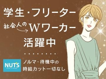 職種/仕事内容 | 仕事内容 ✨ガールズバーのフロアレディ✨ 未経験歓迎/日払いOK/駅チカ =============== ⭐オシャレ自由&完全対面接客⭐ =============== 「Nut’s」なら高バック率で しっかり稼げるのが魅力です! 頑張り次第ではキャバクラより 稼げるスタッフも多数在籍♪ お客様と楽しく会話しながら ドリンクを提供するだけの 簡単なお仕事なので安心です! 未経験から始めた方も活躍中♪ 友達同士の応募も大歓迎です✨ 気軽に応募OK♪ =============== ⭐安心ポイント⭐ =============== ・ノルマなし&待機カットなし ・体験入店は何度でもOK! ・終電後は送りがあるから安心 ・履歴書不要で即スタート可能 ・シフトは完全自由で融通抜群 =============== ⭐働きやすさ⭐ =============== ・週1日~/1日3hから勤務OK ・短期も長期もどちらも歓迎! ・髪色・ネイル・ピアス自由で オシャレを楽しみながら勤務♪ ・学生・フリーター・主婦(夫) みんな活躍中です! =============== ⭐給与⭐ =============== 時給2500円~+各種高額バック 日給1万円以上も可能です! フルタイム勤務はさらに時給UP 毎日が給料日の【日払い制度】 があるから安心して働けます♪ =============== ⭐勤務時間⭐ =============== 21:00~翌5:00までの間で自由♪ 週1日・短時間勤務も大歓迎! 完全希望シフト制で学業や本業 との両立もしやすい環境です。 =============== ⭐職場環境⭐ =============== リニューアルしたてのキレイな お店で快適にお仕事ができます。 フラットな人間関係なので スグに馴染める雰囲気バツグン =============== ⭐応募方法⭐ =============== 応募はとってもカンタンです♪ 履歴書は不要で即面接OK! 「まずは体験入店から…」 も大歓迎ですので気軽にご応募を♪ |