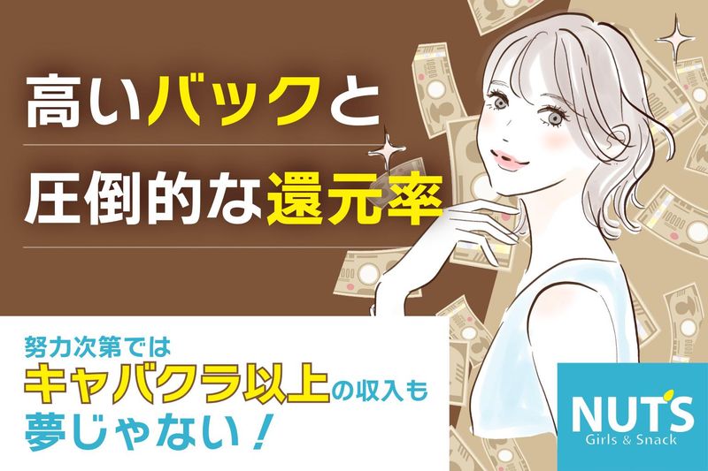 対象となる方 | 求めている人材 =============== 18歳以上の方(※法令による) =============== ✨学生さん・フリーターさん歓迎 ✨Wワーク・副業の社会人さんも歓迎 ✨主婦(夫)さん・ブランク復帰もOK ✅ 20代スタッフ中心に活躍中 ✅ ナイトワーク初めてさんも安心 ✅ 未経験スタート多数で心強い環境 友達同士の応募や 「ちょっと体験」も大歓迎! オシャレを楽しみながら 無理なく働けます♪ =============== ⭐Nut’sが選ばれる理由⭐ =============== 高いバック率と圧倒的な還元率! 頑張った分だけドカンと給料に反映 ✨未経験からでも高収入を狙える✨ キャバクラ以上に稼ぐスタッフも在籍! ここで新しいチャンスを掴みませんか? 年齢の条件と理由:あり(例外事由2号・18歳以上(労働基準法)) |