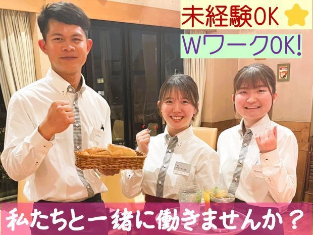 職種/仕事内容 | 仕事内容 まずは簡単なテーブルセットや片付けをお願いします。 テーブル番号やメニュー名を覚えたら 徐々にお料理を運んだり、お客様をご案内したりと お仕事の幅を広げていってくださいね。 1ヶ月くらいで基本はマスターできる簡単な内容です。 もちろん最初は難しいことも多いと思いますので 店長や先輩スタッフが全力でサポートします ご安心くださいね。 |