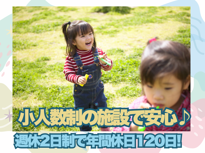 職種/仕事内容 | 仕事内容 \未経験からでもスタートできる!/ 子どもたちの成長を一緒に見守りませんか? 賞与あり・週休2日制・年間休日120日で、 プライベートとの両立も可能です◎ 土日出勤の場合は別途手当あり! 【仕事内容】 発達に課題のある未就学児(0~5歳)や 小学生以上のお子さまを対象に、 学習や生活支援、遊びを通じた 療育を行っていただきます。 子どもたちが安心して過ごせる環境を整え、 生活能力や基礎学力を身につける サポートをお願いします。 ⏩施設の利用定員は1日10名程度 ⏩子どもと一緒に遊びや学習を 楽しみながら支援 ⏩未経験やブランクがある方も安心の 研修・フォロー体制あり 【求める人材】 ✅保育士資格をお持ちの方(必須) ✅普通自動車運転免許 ✅教育・保育や福祉の分野に 興味がある方歓迎! \こんな方にピッタリ/ ⭐子どもが好きで、資格を活かして働きたい ⭐現場経験はないけどチャレンジしたい ⭐子育てが落ち着いて仕事復帰したい ⭐人と関わることが好きで、 前向きに取り組める ✨アピールポイント✨ ・未経験でも安心のサポート体制 ・賞与あり&週休2日制で ワークライフバランス◎ ・資格を活かしてキャリアアップ可能 ・家庭との両立やブランク復帰も応援! 「子どもたちの未来を支える仕事に挑戦したい」 「福祉・教育分野で長く働きたい」 そんな想いを持った方、ぜひご応募ください! |