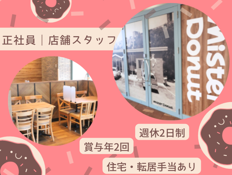 職種/仕事内容 | 仕事内容 ⭐大人気ドーナツ店の正社員募集⭐ ・・・・・・・・・・・・・・・・・・・・・・・・・・・・・・・・・・・・・・・ <将来の店長候補を大募集‼> 中途社員の募集です◎ ミスタードーナツ店舗にて ✅ドーナツ・飲茶などの製造 ✅接客業務 ✅店内清掃 ✅アルバイト・パートさんの労務管理 などの店舗に関わる運営・ マネジメント業務をお任せします‼ 入社後は店舗内の実務を 一通り経験していただき、 経験を積んだ後は店長を 目指していただきます。 毎年人気の福袋や人気商品との タイアップなど年間を通して イベント盛りだくさん‼ 新作もいち早くチェックできます◎ ・・・・・・・・・・・・・・・・・・・・・・・・・・・・・・・・・・・・・・・ 入社後の勤務先は通勤時間を考慮して ・ピオニウォーク東松山ショップ(東松山市) ・IY埼玉大井ショップ(ふじみ野市) ・エルミこうのすショップ(鴻巣市) ・アリオ鷲宮ショップ(久喜市) ・ウニクス南古谷ショップ(川越市) ・ウニクス伊奈ショップ(伊奈町) ・ウニクス秩父ショップ(秩父市) のいずれかになります。 他、茨城県では ・イオン古河ショップ ・結城ショップ ・境フィズショップ のいずれかになります。 ※場合によっては、 将来的に埼玉勤務の可能性あり。 ※但しその場合でも、 転居手当70,000円、住宅手当7,000円と 福利厚生は充実しております✨ 株式会社ダスキンくりはらは ダスキンのフランチャイズチェーンとして 埼玉県及び茨城県下に、 ダストコントロールの他、 ミスタードーナツなど 幅広く展開しているフランチャイズ企業です! |