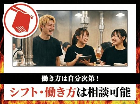 職種/仕事内容 | 仕事内容 【ホールスタッフのお仕事について】 オーダーはタッチパネル、お冷はセルフサービスでラクラク♪ 基本はご案内や七輪の設置とドリンクやお肉、サラダなどの配膳や 片付けなどのオシゴトがメイン★ 話題の配膳ロボットも続々導入中です! 初めてのバイト・パートという方は まずは「いらっしゃいませ!」と笑顔でお客様を お迎えすることができれば問題なしです◎ 【接客未経験さん大歓迎!】 学生さんやフリーターさんなどが多数活躍中の店内♪ 初出勤はドキドキすると思うけど お仕事あとのまかないタイムになる頃には ほとんどの人が笑顔でおしゃべりしてます◎ ビビンバやクッパなどの人気メニューや まかないのバリエーションも多数あって 栄養満点で食費も浮いて言うことなし♪ 【シフトの自由度が高い♪】 安安は週2日~、1日3h~、自分の生活に合わせて働けます! 学生さんなら週2,3日くらいで働く方が多いです。 テスト期間にはお休みなどもOKです◎ お友達と一緒の応募やシフトも大丈夫です♪ しっかり働きたいフリーターさんなら フルタイム×週5日での勤務もできるから収入安定! どなたでも無理なく働ける環境を整えています。 【髪色自由♪昇給あり♪社割あり♪】 飲食のオシゴトなので髪の毛はバンダナできっちり隠しますから 髪の毛に関する規定はありません。 アルバイト・パートさんにも昇給制度あり! 普段の仕事への取組みを店長がしっかり評価します。 昇給が決定したら翌月のお給料から反映されます。 20%オフの割引券が貰えるので ご家族やお友達とのお食事もお得に楽しめます♪ |