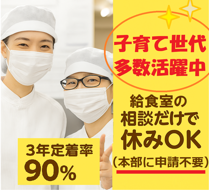 職種/仕事内容 | 仕事内容 ⭐【調理師】資格をお持ちの方 ⭐ 「はじめての正社員」「未経験」大歓迎 ◤ ̄ ̄ ̄ ̄ ̄ ̄ ̄ ̄ ̄ ̄ ̄ ̄ ̄ ̄ ̄ ̄◥ 3年定着90%︕創業60年の安定企業運営 木幡小学校内の給食室 ◣________________◢ 「流れ作業の調理に、物⾜りなさを感じていませんか︖」 効率優先のセントラルキッチンや 深夜まで及ぶ飲⾷店勤務など今の環境に疲れているなら、 当社の「学校給⾷」という選択肢を考えてみませんか。 私生活や子育てなどと両立ラクラク 長期・安定して勤務できますよ♪ ー*学校給食室はココが◎*ー ✨ 完全、土日祝休み ✨ 年間休日126日+有給休暇あり ✨ 夕方までで残業なし! ー*さらに当社はココが◎*ー ✨ スタッフ同⼠の相談だけでお休みOK ✨ 春夏冬休みは全部休みもOK! ✨ 給⾷無料/交通費全額支給! ✨ 衛⽣上の待機でも給与6割保障 ✨ 引っ越しが必要な転勤なし ✨ ⽉1回、⾷品などが当たる抽選会あり ┏━━━━━━━━━━━━━━━━━┓ ┃ 未経験OK!資格があれば経験不問! ┃ ┃ 経験者は開始月給優遇します♪ ┃ ┗━━v━━━━━━━━━━━━━━┛ ⏩ 面接1回のみ!筆記・実技なし ⏩ 応募は約1分でカンタン入力 ⏩電話応募も歓迎▶0661529061 【仕事内容】 宇治市木幡赤塚の木幡小学校内の給⾷室での調理業務全般と⾷材管理の仕事です。 献⽴に従って毎⽇同じ⾷数を、みんなで⼀緒に調理するから、学校給⾷室が初めての⽅も安⼼ですよ 野菜の洗浄、カット、調理、クラスごとへの区分け、食器の回収、清掃など調理スタッフ8名で分担しながら作業しています。 ✅ 制服・備品すべて会社支給 ✅ 洗濯不要で家事負担なし <こんな会社です> 全国にスタッフ3000名在籍の安定企業。 創業60年以上の実績で、⻑く働ける環境。 ■■■■■【 当社の魅⼒ 】■■■■■ ⭐3年定着率90%︕ 現場の無理がないオペレーションと、 お互いを尊重し合う⾵⼟があるからこそ︕ 現場巡回などで関西事業所のスタッフが丁寧にサポートします。 ⭐温かな社⾵︕ 当社はフルーツやビール等が当たる「プレゼント抽選会(毎⽉)」の実施など 従業員を単なる労働⼒ではなく、 共に歩む「仲間」として⼤切にする⽂化が根付いています。 |