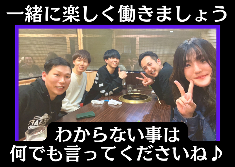 対象となる方 | 求めている人材 ・新大学生も歓迎 ・主婦(夫)活躍中 ・学歴不問 ・大学生歓迎 ・専門学生 ・フリーター大歓迎 ・第二新卒歓迎 ・長期大歓迎 ・ブランク有OK こんな方にオススメ ・食べるのが好き、カフェ巡りが趣味、焼肉や居酒屋、焼き鳥屋さんによく行く ・前職こんなお仕事していた方も活躍できます。例/コンビニ・ネットカフェ・イベントスタッフ、一般事務、アパレル、フレンチ、和食など ・正社員、アルバイト、パートなどの雇用形態や店長、調理補助、ホール、キッチン、学生バイト、主婦パート、Wワーカーなど様々な方が活躍中! |
