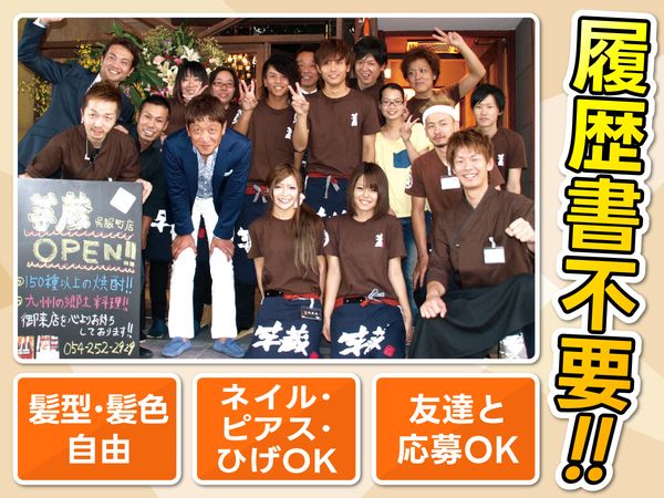 職種/仕事内容 | 仕事内容 仕込み・盛付など簡単な作業から始めていただきます。 社員さん・先輩スタッフと一緒に行っていただくので、キッチン業務未経験の方もご安心ください! ❖**・・・**❖**・・・**❖**・・・**❖**・・・**❖ <こんな方も歓迎!> ・扶養内で働きたい方 ・バイトデビューや未経験者 ・人気店・おしゃれ居酒屋で働きたい方 ・ワイワイ楽しく働きたい方 ・学校と両立したい大学生 ❖**・・・**❖**・・・**❖**・・・**❖**・・・**❖ *お店について* 本格的な九州料理と自慢の焼酎100種以上が楽しめる九州を愛する大人の居酒屋! 芋蔵といえば~自家製鶏出汁のもつ鍋~・~鹿児島黒豚葱しゃぶしゃぶ~をはじめ、豊富な九州料理がそろっています。 店内に一歩入ると目の前に広がる焼酎セラー! 店内は、最大9名様まで座れる完全個室、最大30名様まで座れる座敷、そのほか4名様用の個室、デートにも使えるカップルシートなど空間にもこだわり、多種多様な目的でご利用いただけます。 |
