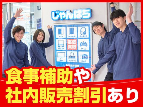 職種/仕事内容 | 仕事内容 ★★このお仕事のポイント★★ ◆正社員登用あり!登用率36%で実績多数◎ ◆週5日×フルタイム勤務歓迎 ◆未経験から安定したキャリアを築けます ◆3ヶ月ごとの評価・昇給制度あり ◆家電・スマホが好きな方にぴったり ◆食事補助や社割、交通費支給など福利厚生も充実 ◆ソフマップの完全子会社!ビックカメラグループでのお仕事 <具体的なお仕事内容> スマートフォン/スマホアクセサリ/中古PC等の 買取・販売業務をお任せします。 ■まずはここからスタート! はじめは店内の清掃業務や、レジをお任せ。 商品棚のほこり取りや、ディスプレイを整えたり お客様が気持ちよくご来店いただけるように、 スタッフ全員で声を掛け合いながら行います。 次のステップは商品の陳列・品出し業務! 社員さんや先輩スタッフが コツを教えますので肩の力を抜いて ゆっくりと丁寧に覚えていただければOKです。 ■慣れてきたら… 中古スマホ・PCの査定業務にもチャレンジ。 「機械に詳しくないから不安だな…」という方もご安心を! チェックシートを使って、 ・機種名や品番の確認 ・商品の状態チェック を行います。 最終判断は社員が行うため、 未経験の方でも安心して取り組めます。 ■希望にあわせてしっかりサポート! 1~3ヶ月ほどで基本業務を一通り習得。 その後は、3ヶ月ごとの個別面談を通して、 スキルアップや正社員登用に向けたステップを 明確にしていきます。 「将来は正社員として安定して働きたい」 そんな想いをしっかりサポートします。 ■キャリアステップ例 アルバイト入社 ↓(6か月~1年) 正社員登用 ↓ 店舗運営・スタッフ育成へ ■1日の流れ(フルタイムの場合例)■ ◆11:00:朝礼・開店準備 ◆11:30:開店 ◆11:30~20:00:検品・品出し・レジ打ちetc. ※休憩は順番に取ってもらいます♪ ◆20:00~:閉店作業 ◆20:10:終礼・退勤 <先輩スタッフの声・フルタイムで働くAさん> ■20代・未経験スタート スマホやPCなどのガジェットが好きで応募しましたが、 専門知識はほとんどありませんでした。 実際の業務では、 チェックシートに沿って確認する作業が中心で、 分からないことはすぐ社員さんに聞ける環境だったので、 不安なく覚えることができました。 フルタイムで働くことで、 接客だけでなく売場づくりや査定業務にも関われて、 仕事の幅が広がっていくのが楽しいです。 将来的には正社員を目指して、 もっとスキルを身につけたいと思っています。 <じゃんぱらってどんな会社?> 1997年に創立以来、スマートフォン・パソコン等の買取販売を行っています。 2021年12月には、株式会社ビックカメラの連結子会社である 株式会社ソフマップが当社の全株式を取得し、完全子会社化。 現在に至ります。「ワクワク、ドキドキ」をお客様に提供することを大切にしています。 |