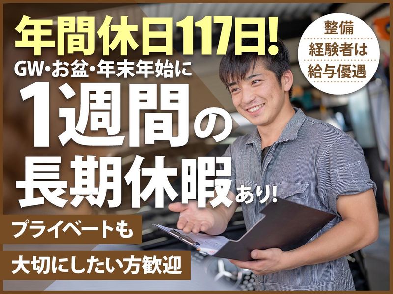 職種/仕事内容 | 仕事内容 ━━━━\ ここがポイント! /━━━━ ◆整備台数が多いときは外注先と連携し、 無理のない業務量を実現! ◆残業ほぼなし! ◆月8日休み(火曜定休)+長期休暇あり! 年間休日117日でお休みしっかり確保◎ ◆家族との時間や趣味も大切にできる働き方 ━━━━━━━━━━━━━━━━━━━━ 【お仕事内容】 ・車検、法定点検、各種一般整備 ・タイヤ・オイル・バッテリー交換などの軽作業 ・不具合診断・修理、用品の取付 ・納車前整備やお客様への修理内容の説明 などをお任せします。 - <当社について> 車の販売・買取・整備・保険提案まで 行う地域密着型の車屋さんです。 国産・輸入車問わず幅広い車種を 扱っており、整備士としての技術や経験を 活かす場面が豊富にあります。 ディーラーのような堅い雰囲気ではなく、 気さくで話しやすいスタッフが多く、 社員数も少なめ。 のびのびと働ける、そんなあたたかい職場です。 |