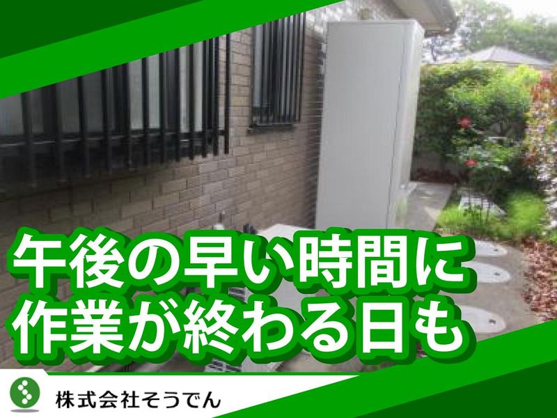 職種/仕事内容 | 仕事内容 主に一般住宅の太陽光発電、オール電化製品、 蓄電池の設置工事補助作業です。 初めのうちはアシスタントとして簡単な材料運びや 先輩の仕事をお手伝いして頂きます。 3~5名のチーム体制で お客様宅へ行き、工事をしていきます。 当社で活躍しているスタッフの中には とっても無口な人もいます。 人見知りや口下手な人でも、当社は大丈夫。 仕事さえきちんとしてくれれば、必要以上のコミュニケーションは 求めません。 一番最近入社した28歳(前職 電気関係 入社5年目)、 工業高校卒の青年が、 今は一生懸命、働いてくれています。 入社当初の履歴書や志望動機も手書きで、 自分から言葉を発するタイプではありませんでした。 先輩方の第一印象としては「ここで続けられるのだろうか・・・」 だったそうです。 そんな彼ですが、正直で誠実な人柄と丁寧な仕事ぶりで いまでは、みんなから愛されています。 お酒もあまりたくさん飲めるタイプではありませんでしたが、 一度飲み会でつい飲みすぎてしまって、社長が介抱し・・・ というエピソードを経て、 今では以前よりちょっぴりお酒をたしなめる様になりました。 ※もちろん飲み会は自由参加です(笑) ꧁—————————————————꧂ ⭐⭐ 太陽と一緒に働く仕事! ⭐⭐ 私たちの仕事は 太陽光発電パネルの設置工事です。 朝、出社後に必要な準備を整え、現場へ出発! 工事は通常9:00から始まり、日が暮れる前に終了します。 進行状況によっては午前中~午後の早い時間に作業が終わることも! 残業は基本的になく、定時で帰れる日が多いため、 夕方は家族や自分の時間を楽しめますよ♪ 太陽光発電の設置経験者はもちろん、 これから技術を身につけたい方も歓迎します。 初めて現場に入った方はまず、部材の名称を 覚えるところから! 先輩のお手伝い、軽作業から始めて徐々に 慣れていってください! 毎日、違う場所へ行くので仕事を通じて いろんな場所へ行けるのが楽しみにもなりますし、 仕事を通じて人と一緒に協力して作業を進める という経験も身に付きます。 環境に貢献しながらスキルアップできる、 非常に魅力的な仕事です! ꧁—————————————————꧂ ⭐⭐ 眺めのいい仕事場! ⭐⭐ 5~6名のチームで現場作業を行います。 あなたにはアシスタント業務をお願いします。 未経験の方も、先輩が隣でサポートします。 安心して作業に取り組めます。 初めは助手として、チームのサポートからスタートし、 徐々にスキルを磨いていきましょう! 経験者や電気工事の資格を持っている方は、 スキルに応じて責任のある仕事をお任せします。 作業服を着用しての工事が中心ですが、 身なりについては常識の範囲内であれば 気にする必要はありません。 たまには屋根の上からの景色を楽しむこともできます。 電気工事の現場で、チームの一員として やりがいを感じながら働ける環境です! ꧁—————————————————꧂ ⭐⭐ 将来性バツグン! ⭐⭐ 電気代の高騰に対応し、節約や売電収入、 停電時の対策として役立つ太陽光発電パネルの 設置工事を行います。 環境保全にも貢献できるこの仕事は、 需要が急増している分野です。 当社は大手メーカーの太陽光発電パネルを使用し、 販売店の下請けとして安定した仕事量を確保しています。 技術を磨けば将来的には独立も目指せる チャンスがあります。 あなたの成長をサポートし、一緒に成長していける 仲間を待っています! ꧁—————————————————꧂ ⭐⭐ 家庭的であったかい! ⭐⭐ 当社では現在10名のスタッフが活躍中で、 そのうち6名が電気工事スタッフです。 活躍中のスタッフは40代が多く、 多様なバックグラウンドを持つチームです。 協力業者も多く、 外国人スタッフもダブルワークで活躍しており、 社内は非常にハートフルな雰囲気です。 社長をはじめ、スタッフ全員で働きやすい 環境作りを心がけ、何でも相談し合える文化があります。 休日の相談も柔軟に対応しており、 プライベートも大切にできます。 また、定期的な社内イベントでは、飲み会や BBQを楽しむことができ、チームの一員として 和気あいあいとした中で働けます。 安定を求める方、正社員として長く働きたい方、 ぜひ当社で一緒に働きましょう! ꧁—————————————————꧂ ⭐⭐ 住まいも資格もサポート! ⭐⭐ この仕事をきっかけに一人暮らしをしたい という方には、住宅費用を会社負担します。 電気工事士1、2級の試験費用も会社が全額負担。 みんな勤務しながら、勉強して資格を取得しているので、 同じ経験をした先輩が分からないところは 丁寧に教えてくれます! 筆記と実地試験がありますが、 資格は一生ものなので合格した時は、 本当に嬉しかったし、目標があると、 自己成長にも繋がります。 ꧁—————————————————꧂ ⭐⭐ 自分らしさを大切にできる! ⭐⭐ 正直、接客があるお仕事ではないので、 