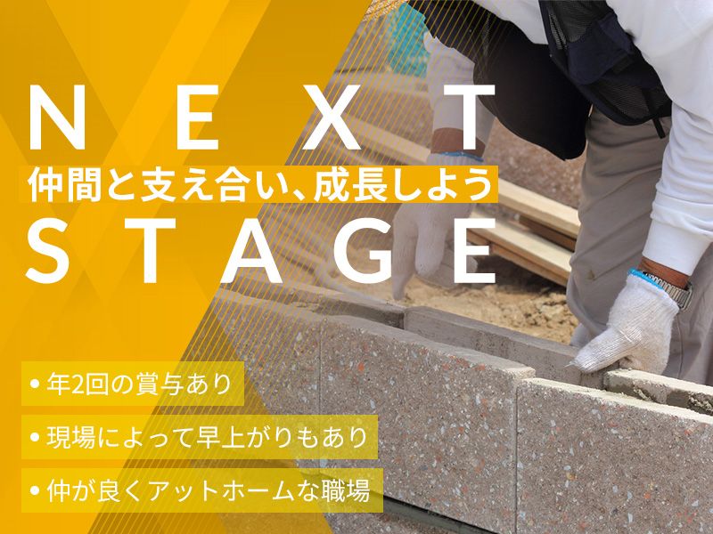 職種/仕事内容 | 仕事内容 <採用残りわずか!> +─+─+─+─+─+─+─+ 創業間もない今だからこそ 成長の瞬間を一緒に! 「外構工事スタッフ」募集! +─+─+─+─+─+─+─+ \この求人の魅力ポイント/ ✅現場次第で早上がりも可能! ✅現場での作業残業はなし! ✅賞与年2回、昇給年1回(実績あり) ✅髪型・髪色自由/ひげOK ✅車・バイク通勤OK(駐車場有) ✅書類選考なし/今すぐ応募可! 【仕事内容】 新築戸建住宅の古いブロックを壊して 新しくブロックを新設したり、 土を搬出・搬入したりする 一次外構工事がメインです。 >>具体的には… ・重機を使った掘削・整地 ・残土の搬出・搬入作業 ・型枠の設置や配筋作業 ・コンクリート打設やブロック積み ・古いブロックの解体と新設 ●1日の流れ 7:00~7:30 資材置き場へ出社(8時より前の移動分は残業代に含む) 8:00~8:30 現場到着 1グループで社用車で現場に向かい作業開始 10:00~ 小休憩(夏場30分休憩・それ以外は15分) ※現場によって小休憩取れない場合もあります 現場作業再開 12:00~13:00 昼休憩 ※現場によって多少前後するが1時間確保 15:00~ 小休憩(夏場30分休憩・それ以外は15分) ※現場によって小休憩取れない場合もある 現場作業再開 13:00~17:00 ※現場や作業工程によっては15時上がり 一緒に現場から帰ってくる その後、資材置き場に戻ってきて退勤(みなし残業代) ※現場作業が延長して残業することなし (小休憩は勤務時間の扱いではない) |