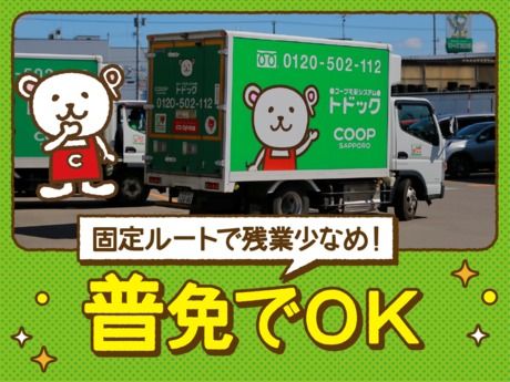 職種/仕事内容 | 仕事内容 仕事内容について CMでおなじみ「宅配トドック」のサービス員です。食料品や日用品をお届けし、注文用紙の回収や季節商品のご案内もお願いします。 ~具体的には~ ●組合員様宅への商品(食料品・日用品)のお届け ●注文用紙の回収 ●季節・キャンペーン商品のご紹介 ●1日70件前後の固定ルート配送 ~入社後のフォロー体制~ まずは座学研修からスタート。その後、7週間の同乗研修で先輩がイチから丁寧に教えます 。最終テストに合格するまでしっかりサポートするので、未経験でも安心してくださいね !「本当に私にできるかな…」そんな不安がある方は、同乗体験も可能です!実際の仕事を見て、不安を解消してから応募を決められます 。荷物の積込み見学もOKです! \私時間たっぷり/完全週休3日制 土日は固定でお休み。さらに平日にもう1日お休みがある「完全週休3日制」です!家族との時間や、平日にしかできない用事、自分の趣味の時間も大切にできますよ。 運転が不安な方も安心のサポート 運転するのは普通免許(AT限定)でOKの小型車(1.5t) !全車バックビューモニター搭載の4WDです。決まった道を行く固定ルートなので、すぐに慣れますよ! ゼロから育てる7週間の手厚い研修 「ドライバーの仕事は初めて」という方も大歓迎!入社後は7週間の座学・同乗研修をご用意 。荷物の運び方からコース順列まで、基本のキからお教えします! 安定と厚待遇で、長く働ける! 時給1335円~の高水準!報奨金制度や共済制度、特別休暇など福利厚生も充実しています。食料品・日用品を扱うため、景気に左右されにくく業務量も安定です♪ |