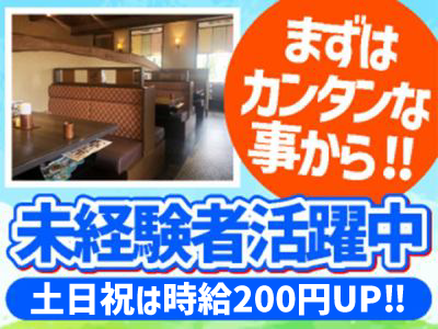 職場環境・雰囲気 | 職場環境 お客様に美味しい食事を ゆっくり楽しんでもらえるような お店作りをしています! 元気で明るい仲間が大勢いて、 いつもニギヤカ♪ 飲食バイト未経験でも、 笑顔で元気よく対応できればOKです! パートデビューや子育てで ブランクがある方の復職も応援! |