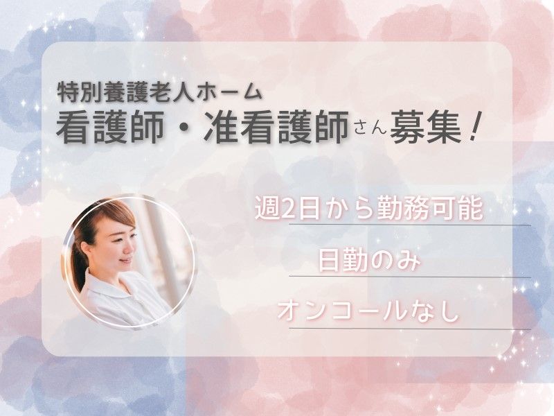 職種/仕事内容 | 仕事内容 特別養護老人ホームでの看護業務をお願いします。 主な業務内容は服薬管理、入浴後の皮膚の処置、バイタルチェック、リハビリ、必要な医療行為など。 看護師は夜勤勤務はございません。 オンコールも外部委託しております。 【施設情報】 定員80名(従来型50名・ユニット型30名) 従来型特別養護老人ホームとユニット型特別養護老人ホームは別棟になります。 看護師は従来型、ユニット型にそれぞれ一日1~2名配置。 記録はパソコンを使用しております。 まずはお気軽にお問合せください! ★登録時はメールやLINEで履歴書のやりとり可♪履歴書の写真を撮って送るだけでもOK! ★顔写真不要です♪ |