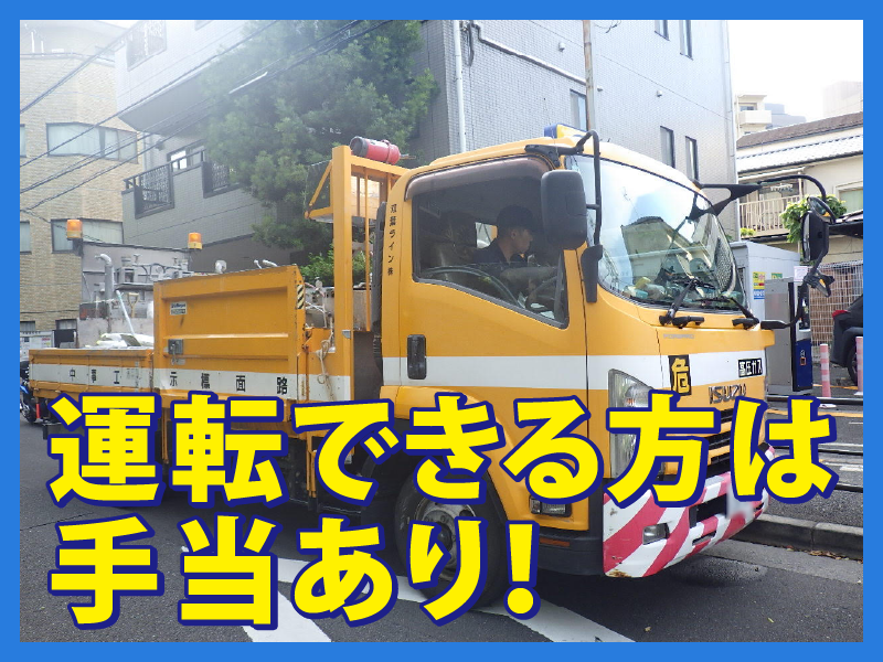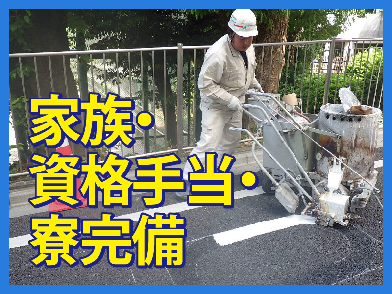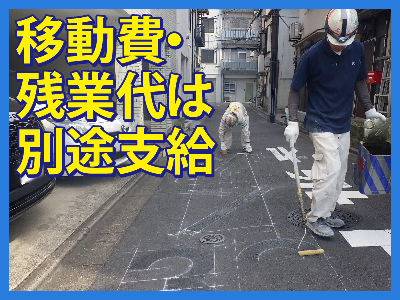職種/仕事内容 | 仕事内容 《求人のポイント 》 ✅寮完備! ✅現場~事務所の移動時間も お給料発生! ✅雨の日でも屋内作業に切替などで お仕事はあるのでご安心を! ★官公庁・大手ゼネコン・公共事業 警視庁・有名商業施設・鉄道関係 などとのお取引あり! 安定した仕事量があります! *-*-*-*-*-*-*-*-*-*-*-*-* \お仕事詳細/  ̄ ̄ ̄ ̄ ̄ ̄ ̄ ✨3人1組のチーム制で未経験でも安心◎ ●道路にライン作図のための墨出し └ラインの枠線を引く作業です。 専用の白い粉を糸に付け、 その糸をはじくように書いていきます。 ●手元作業 └ラインを引く場所をほうきで掃いて、 墨出ししたラインの外側にテープを貼り 塗料のはみだしを防ぎます。 ●施工機械操作 └専用の機械を操作し ラインを引いていきます。 先ほど貼ったテープをはがして完成! ●その他 └現場により、標識・点字シートなどの 取り付け業務があります。 事務所では、資料作成・日報記入など もあります。 \現場について/  ̄ ̄ ̄ ̄ ̄ ̄ ̄ ̄ ✨外作業は、基本的に晴れの日! 雨天は地下や施設内等での作業に 変更もあります。 ●関東内の現場へ移動(毎回変動) 様々な場所でお仕事ができるので 飽きずに作業可能です♪ また、事務所集合・事務所解散なので 現場までの移動で迷うことはありません! ☆現場例→松戸、三郷、亀有、金町、 北千住、草加、新小岩等 ●「アパートの駐車場」といった 小規模な現場は、1時間ほどで終了。 そのため、1日に3か所程 回ることもあります。 ●「商業施設」「環状道路」といった 大規模な現場は、数日間かかりますが、 複数現場の移動・掛け持ちはありません。 |