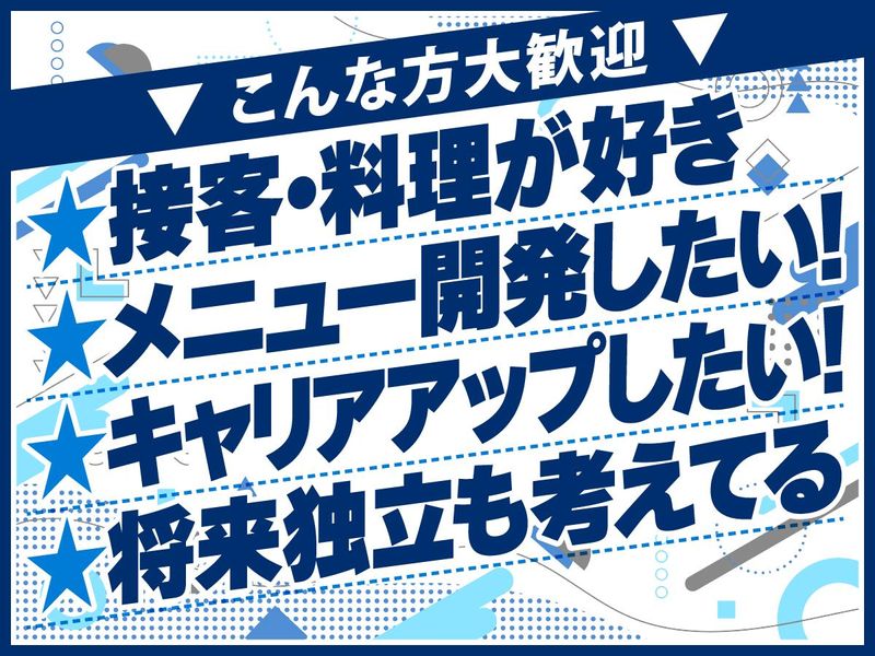 対象となる方 | 求めている人材 ・飲食店での勤務経験者(目安:3年以上) └経験3年未満の方も、ぜひ一度ご相談ください。 ・学歴不問 ・責任感を持って業務に取り組める方 ◎飲食店の業界・ジャンルは不問! ┗和食、フレンチ、イタリアン、中華、居酒屋、バル、レストランカフェ など… ◎飲食店であれば経験業務も不問! ┗調理、仕込み、配膳、料理・ドリンクの提供 など… 【こんな方はぜひ】 ・接客が好きな方 ・料理が好きな方 ・飲食業界でキャリアアップしたい方 ・将来の独立も視野に入れている方 【こんな方は即戦力】 ・飲食店での管理経験(店長・副店長、主任、リーダー等) ・発注管理の実務経験 ・売上管理や数値分析ができる方 「お店を任せられる人」として、 これまでの経験と実績を重視いたします。 「お店を成長させていきたい」 という想いをお持ちの方をお待ちしています。 |