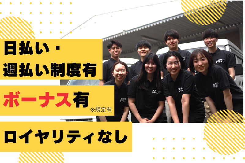 給与 | 日給19,000円~40,000円 給与詳細 基本給:日給 1万9000円 〜 4万円 固定残業代:なし 【一律手当】 全員に一律で支払われる通勤・皆勤・家族手当金額:なし 全員に一律で支払われるその他手当金額:なし ・前払い制度(規定有)※稼働分支給 ・日払いあり ・週払いあり ✨賞与あり(年2回) ※規定有・業績による |