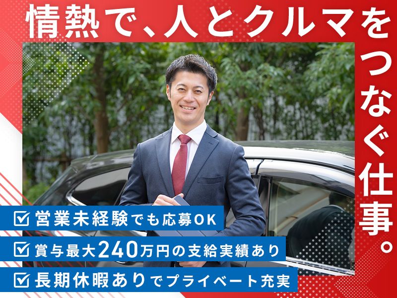 対象となる方 | 必要資格・経験 <必須> ・普通自動車免許(AT限定可) <歓迎> ・車が好きな方 ・人と話すことが好きな方 ・営業にチャレンジしたい方歓迎 【Point】 ●未経験者歓迎! ●経験者歓迎!ブランクOK! ●年齢不問!20代、30代の若手活躍中! ●40代も活躍中! ●新卒・第二新卒歓迎! ●U・Iターン歓迎! ●中途社員の比率が高い職場です! ●幹部候補採用!管理職登用実績あり! |