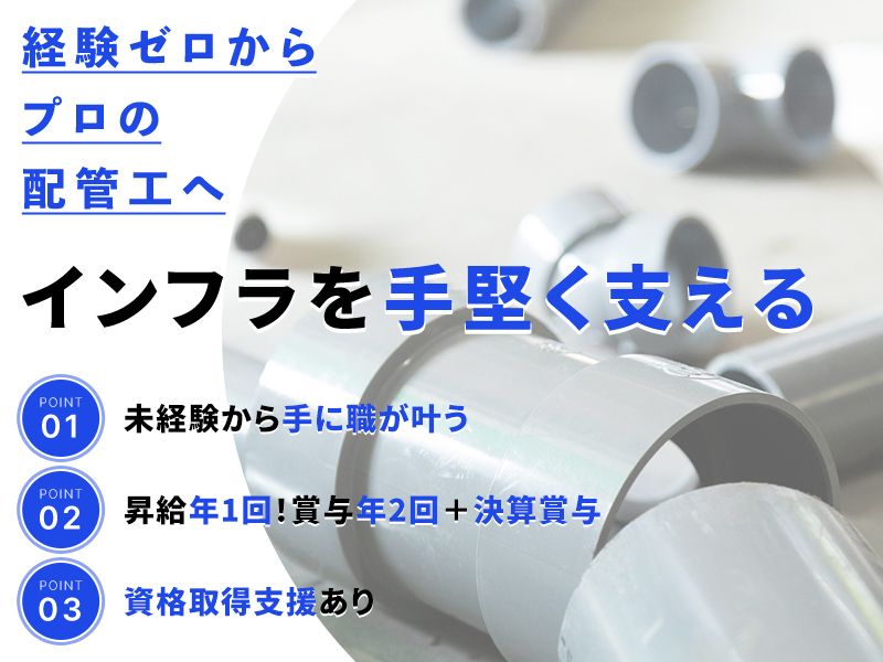 職種/仕事内容 | 仕事内容 =============== 完全未経験からインフラを支える 配管工事のプロへ ✅賞与最大年3回! ✅入社後に資格取得可能 =============== ----------- ✨…ここがPOINT…✨ ----------- ●完全未経験OK!資格取得支援あり ●昇給年1回&賞与年2回+決算賞与 ●髪型自由でひげ・ピアスOK! ●残業月20時間以内で無理がない ●CADによる図面作成にも携われる! 【 仕事内容 】 長野県内で空調配管と 給排水管の施工を行います。 (冷媒配管工事がメインになります) ●現場:公共施設または民間施設 ●工事がない日: 事務作業やCADによる 図面作成を行います。 ※ゆくゆくは施工管理にも挑戦できます。 ※マンツーマンで研修を行うので安心! ※和気あいあいとした職場です! |