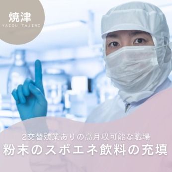 職種/仕事内容 | 仕事内容 積極採用中!! 【おすすめポイント】 ★高時給1300円!! ★2交替&深夜手当で高収入Get! ★コテコテのライン作業ではないので安心◎ ★製造未経験の方も安心の研修制度あり♪ ★構内事務所に社員さんが常駐しています ⇒困ったことがあれば、すぐに確認できる環境◎ ★1人でモクモク作業したい方にオススメ ★マイカー通勤OK ★職場見学が可能です! 【お仕事内容】 <粉末のスポーツドリンクのライン製造補助> (1)充填工程: ・粉末で出てくる充填袋が、いっぱいになったら袋替え ・いっぱいになった袋は、台車で所定地に運びます (2)包装: ・主に製品検査と資材補充 ・包装工程でのチェックや検査 ●材料の投入や調合などいくつかの工程があります ●手作業で組立てるような作業はなし 【職場環境】 ・安心の研修制度(安全講習から教えていただけます) ・作業を覚えたら一人でモクモク作業 【株式会社東海道シグマについて】 ■地元静岡県の信頼を大切に35年以上の実績あり ■当社ならではのきめ細かなスタッフフォローと小回りのきくサービスを提供 ■何よりも大切にしたいのはスタッフとの「共感!」 ■共に考え、共に悩み、共に喜ぶ・・・そんな風にいつもあなたに寄り添っていきたい ■専任スタッフがあなたをサポート!派遣が初めてという方でも安心してご相談を ■居心地の良い職場で長く働けるよう人柄重視の採用 ■県内の製造案件多数! ■軽作業、事務、接客業、レジャー等異業界から未経験スタートのスタッフ多数活躍中 ■お仕事開始以降も営業とコーディネーターがサポート! ■職場のお仕事状況や環境等を定期的にヒアリング ■時には勤務条件・環境の見直し等も派遣先へ交渉 ■頑張るあなたを万全のサポートで応援! ■PCセミナー、ビジネスマナー等、当社独自の研修の他、PC系・医療系スクール等の優待割引制度も! |