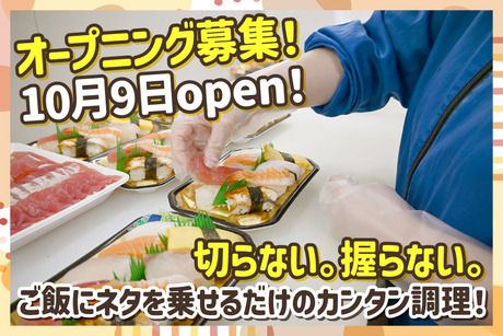 職種/仕事内容 | 仕事内容 アピールポイント *<10月9日オープン!オープニングスタッフ募集>* *<大型採用で同期がたくさん!上下関係なくフラットにスタートができる!>* *<未経験でもスグできる!モクモク作業でめちゃ簡単♪>* *<スタッフ割引で美味しいお魚を食卓にも!>* *<早朝~11時or12時までの午前のみ!>* *<午後は自由に過ごせる♪家事や趣味の自分時間もたっぷり!>* 【お仕事内容】 お任せするのは・・・簡単なお寿司作り! 調理経験はなくてもOK!気軽に始められます! \POINT/ ◆白ご飯にネタを載せるダケでOK◎ シンプル作業で覚えることは少なめ! ◆1日4~5名の少人数制! 困ったときはすぐに相談できます◎ ◆接客なしのモクモク作業! 周りを気にせずコツコツお仕事できる環境です◎ *【慣れるまでしっかりサポート】* 資格や経験は不問! スーパーならではの仕事の進め方などは徐々に慣れて頂ければOK! 飲食出身で、小売店勤務が初めてという方も わからないことは気軽に相談してくださいね。 安心してお仕事に取り組めるよう、 周りのスタッフがしっかりフォローします。 *【ニオイの心配は要りません!by40代主婦さん】* 「正直、入るまでは鮮魚って生臭いイメージでしたが、 そんな心配はご無用!切り身の魚ばかりなのでほぼ気になりません! 制服もありますし、仕事後そのままスーパーで買い物して帰る なんてスタッフもたくさんいます! それよりも新鮮なお魚がスタッフ割でゲット出来ちゃうのが嬉しいです!」 - 「面接」ではなく「面談」を10~15分で予定しております! あなたの人柄を知るために色々と雑談のようなお話ができればと思っております! 当日は私服OK!普段通りリラックスしてお越しください! |
