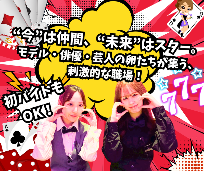 対象となる方 | 求めている人材 【歓迎】 ・とにかく元気で明るい接客なら誰にも負けない!そんなアナタ大歓迎! ・オープニング気分で働きたい方大歓迎! ・バイトリーダーとして、活躍頂けるフリーターの方は特に大歓迎! ・未経験者さん大歓迎!(初めてのバイトチャレンジも大応援!) ・これまでに接客や飲食店、サービス業界経験者さん、音楽フェスなどのイベントスタッフさん! …etc.エンタメ業界での勤務経験者の方も大歓迎! 【こんなみなさんが活躍中!】 ・モデル、俳優、DJ、芸人の卵が活躍中! ・20代、30代の楽しい男女が多数活躍中! ・学生・フリーターさんたちが時間を有効活用しながら活躍中! ・掛け持ち・Wワーク・副業で稼ぐ仲間が活躍中! ・とにかくイベント大好き! ・盛り上げるのが大好きで自称、盛り上げ隊長の方! ・人とお話をするのが大好きな方! ・アソビバーをチェックしていた!いや、いったことが有る!または、とても興味がある方! ・楽しいことをしながら働きたい方! ・周りのみんなを楽しませるのが得意な方! ・ゲームやカラオケなど、遊ぶことが大好きな方! 【未経験からでも安心なシステムって?】 みんな初めは、未経験!そんなみなさんでも安心して、 お仕事ができるように社内研修をご用意しています。 仕事の「これってどうするの?」や「自己成長なども」なので、学生の方には就活で活かせるノウハウも! 一人ひとりのみなさんがチーム力やコミュニケーション力を身に着けて頂けるようにバックアップ! ・みんなが、楽しく成長できるプログラムでお迎えします! (分からないことや個人的なお悩みなどでも真剣に対応しますので、ご安心ください!) 【実は…】 お酒を飲まない!スタッフなんです。 (スタッフのみなさんは、飲酒はできません!ゴメンナサイ!でもソフトドリンクはOKで~す♪) |