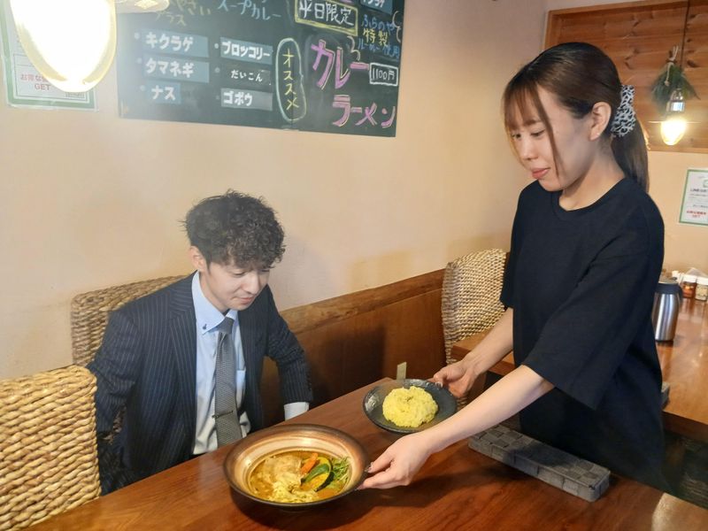 対象となる方 | 求めている人材 < 未経験大歓迎! > ✅飲食業の経験がなくてもOK ✅接客が初めて、包丁苦手な方もスタートしやすい! ✅年齢不問&ブランクOK ✅もちろん経験者も大歓迎! ✅20代や30~40代の中高年も在籍中 「久しぶりの仕事復帰に」 「カフェ・居酒屋でのホール経験がある」 「髪色・服装自由ですか?」 「まかないのある仕事を探している」 などなど、応募理由はさまざま✨ 腰を据えて働きたいが叶うスパイシーな毎日! ✩˖°⌖.꙳✩˖°⌖.꙳✩˖°⌖.꙳✩˖°⌖. スタッフインタビュー Hさん/20代/女性/O型 ✩˖°⌖.꙳✩˖°⌖.꙳✩˖°⌖.꙳✩˖°⌖. 【プロフィール】 ・北広島市うまれ ・社歴:3年目 ▶前職はお蕎麦屋さん ・好きな食べ物 ▶スナック菓子、味噌ラーメン、焼肉 ・趣味:動画鑑賞(ドラマや映画) ・休日の過ごし方▶サウナ ・将来の夢:沖縄旅行! 【お店について】 ランチ帯は社会人の方が多くて、 ディナーは家族連れが多めです。 海外客の方は1割程度なので、 英語力も必要ありません◎ 最初から難しい作業はお任せしないので まずはアルバイトさんと同じ ホール業務全般に慣れていただきます。 覚えてきたら、カレー作りなども 徐々に覚えていきましょう! 【まかないについて】 お店のメニューから選べます◎ 食べるタイミングは、ランチとディナーの 間の休憩時間に1日1食。持ち帰りもOK◎ 私のオススメは、”道産納豆と 富良野産豚ひき肉のスープカレー” ぜひ食べてみてください('▽'*)♪ |
