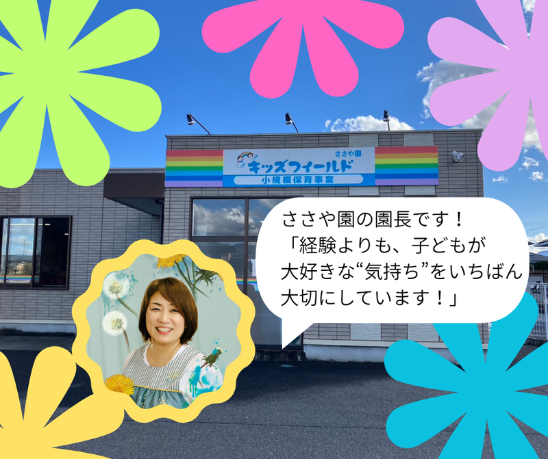 職種/仕事内容 | 仕事内容 園児増加によりスタッフを増員募集いたします! 私たちの一員として、温かい保育の現場で活躍しませんか? 1日5〜6名体制で運営を行う、 小規模認可保育園にて保育士さん募集! ✧┈┈┈┈┈┈ここがPoint┈┈┈┈┈┈✧ ❍年間休日123日!持ち帰り仕事なし! ❍原則定時退社!残業代は分単位で支給 ❍賞与年2回(昨年実績平均2.5ヶ月) ❍有給休暇取得率85%以上・時間単位で取得可能! ❍シニア・中高年のスタッフも活躍中! ❍記入書類の簡略化など業務負担軽減に取り組んでいます ❍30〜40代活躍中!子育てからの復帰も歓迎です♪ ❍スキル・能力を給与に反映するシステムあり! ✬施設情報✬ 名称 :小規模認可保育園キッズフィールド ささや園 所在地 :福島県福島市笹谷6-4 対象年齢:0歳〜2歳 定員 :19名 開園時間:通常保育 7:30〜19:00 公式YouTube 〜キッズフィールド保育士の一日〜 https://www.youtube.com/watch?v=S96M_lbcpdA_ 《仕事内容》 小規模認可保育園にて 保育士業務をお願いします。 <一覧で見る業務内容> ・園児受け入れ ・身の回りのお世話 ・遊び、散歩など ・季節行事、イベント等の企画・運営 ・保護者対応 など <職員配置について> 0歳児に3名・1〜2歳児6名につき1名の スタッフを配置、担任制を採用し、 専任的に子供達に寄り添い、 成長を見守っております。 ⋆˖✧⋆˖✧⋆˖✧⋆˖✧⋆˖✧ <代表的な1日の流れ:例> 08:30 随時園児受入れ 10:00 天気によりお散歩 11:30 お昼ご飯 12:00 お昼寝 15:00 おやつ 17:30 随時降園 ※園によっては、7時より 園児受け入れを行います。 ✧┈┈┈┈┈┈┈┈┈┈┈┈┈┈┈┈┈┈┈✧ 【先輩インタビュー】 2022年入職 Iさん Q入職したきっかけは? ブランクがあったので不安でしたが、 見学時の雰囲気がとても穏やかで、 「ここなら安心して働けそう」と思い、決意しました。 Q職場の雰囲気や働き方の魅力を教えてください。 気さくで親切なスタッフが多く、 お互いにフォローし、支え合いながら働いています。 残業も少なく、持ち帰りの仕事も発生しないので、 オンオフメリハリもって働ける環境が魅力です! 何より先生の人数が多いので、 じっくりと子供達と向き合えるところが一番の魅力だと思います。 ✧┈┈┈┈┈┈┈┈┈┈┈┈┈┈┈┈┈┈┈✧ ≪✨グループ法人ならではの強み✨≫ 当社は東北・関東エリアで複数の園を運営しており、 充実した福利厚生や人事体制を整えています。 「はじめは正社員。育児中はパートで」 「家族が転勤するから異動希望」など、 入社後の働き方もお気軽にご相談ください◎ 県内の転勤、関東への転勤など実績多数 ※希望がない場合、転勤はありません。 ≪✨保育士としての実務未経験の方もぜひ✨≫ 『資格は持っているけど』 『ブランクがあって心配』 という方もご安心を! まずは丁寧に業務を教えます♪ \職場見学も可能です/ 安心してお仕事をして頂くために、 事前に職場見学をしていただけます。 一緒に過ごす子どもたちや、 園の様子を実際に見てスタッフと 話ができる機会を設けています。 ※施設見学・日時のご希望はお気軽にどうぞ! 見学場所:キッズフィールド各園 |