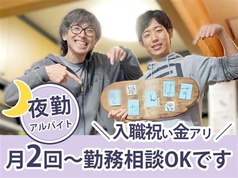 職種/仕事内容 | 障害者グループホーム きゃんばす 求人概要 障害者グループホーム きゃんばす:世話人/夜勤アルバイト/夜勤アルバイト 1夜勤1万5715円~3万2585円◆月2回から相談できる!資格・経験不問●夜勤アルバイト求人【横浜市栄区、グループホーム、世話人、夜勤アルバイト】採用強化中 職種 世話人/夜勤アルバイト 所在地 〒247-0034 神奈川県横浜市栄区桂台中8-8 給与 日給1万5715円~3万2585円(1夜勤) ※経験・能力・資格・勤務時間により異なる 求人詳細 1夜勤1万5715円~3万2585円◆月2回から相談できる!資格・経験不問●夜勤アルバイト求人【横浜市栄区、グループホーム、世話人、夜勤アルバイト】採用強化中 まずはエントリーください!自身のペースで働ける世話人のお仕事◎月2回から勤務の夜勤アルバイト!特別な資格や経験は不要★入職祝い金の支給があるのが嬉しい☆ 職種 世話人/夜勤アルバイト 仕事内容・PR o○oo○o『障害者グループホーム きゃんばす』夜勤アルバイト・世話人募集o○oo○o お仕事は、グループホームにおける夜間業務です。 障害者グループホームで暮らす方の日常をサポートしていただきます。 マンツーマンの手厚い体制で入居者さまのペースに沿ったケアを目指しています。 メンバーの「我が家」を一緒にサポートする仲間を募集します! ベテランのスタッフが丁寧に申し送りしますので、未経験の方、ブランクのある方も安心してご応募ください。 ♪:;;;:♪:;;;:♪:;;;:♪:;;;:♪:;;;:♪:;;;:♪:;;;:♪:;;;:♪:;;;:♪ 勤務時間は2種類あり、選択することができます! 2種類組み合わせの時間でも相談OK! このサイトからの直接応募で、「入職祝い金」をプレゼントします!!(規定あり) ♪:;;;:♪:;;;:♪:;;;:♪:;;;:♪:;;;:♪:;;;:♪:;;;:♪:;;;:♪:;;;:♪ ※重度訪問介護従業者養成研修未受講、かつ、受講免除対象外の方は入職後3ヶ月以内の受講が必須となります。詳しくは面接にてご説明いたします。 雇い入れ後の業務内容の変更の範囲および就業場所の変更範囲の詳細は面談時にお伝えします。 雇用形態 夜勤アルバイト 契約期間 雇用期間の定めあり 上限1年 契約更新あり ※勤務評価、態度、能力、および経営状況も踏まえて判断する |