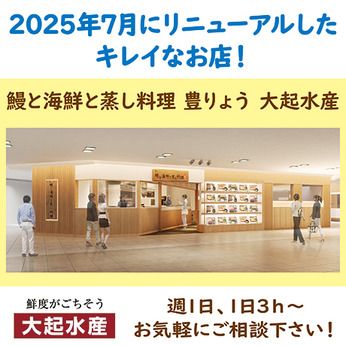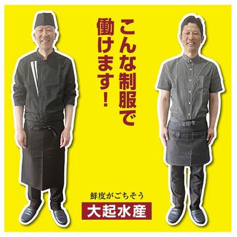 職種/仕事内容 | 仕事内容 メディアで取り扱われることも多い大起水産の新店で楽しくお仕事しませんか? ・来店されたお客様の席へのご案内や接客・レジ業務 分かりやすいお仕事を中心にお願いしますので、 飲食店勤務が初めての方も心配はいりません。 「鰻」と聞くと、敷居が高く感じてしまうかもしれませんが心配は無用◎初めての方もお気軽に! 難しい仕事や困ったことがあっても、 社員がしっかりフォローしますのでご安心ください! 資格や年齢も不問です。長期勤務できる方大歓迎! 無理のない範囲で続けてください。 \大学生や高校生をはじめ、フリーター、主婦(主夫)が活躍中!/ 10代・20代・30代・40代・50代まで幅広く活躍中! 急なお休みも相談しやすいのが魅力。 スタッフ同士で話し合ってシフトを調整したりと、 協力体制も抜群です。 \美味しいお寿司が食べられる!お得な社割はスタッフからも好評/ 昇給や交通費支給、友人紹介制度など福利厚生も充実しています。 嬉しい従業員割引あり! さらに友人紹介で1万円支給(規定あり)! 社員登用制度があるので、アルバイトから始めて 社員になったスタッフもいます。 |