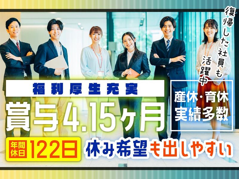 休日休暇 | 休日休暇 <年間休日120日以上> ■完全週休2日制(土・日) ■祝日 ■年末年始休暇 ■夏季休暇(2日) ■有給休暇 ■慶弔休暇 ■産前・産後休暇 (取得・復職実績あり) ■育児休暇 (取得・復職実績あり) ■介護休暇 ◎産休・育休から復帰して、 また活躍している社員もいます! 女性管理職の登用実績も多数! ◎お休みの希望は最大限考慮! 有給休暇の相談もしやすい雰囲気です。 |