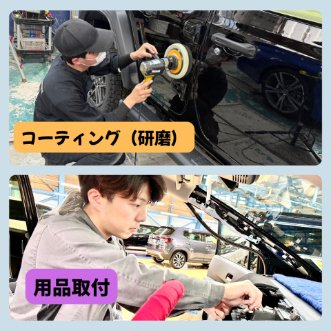 職種/仕事内容 | 募集要項 職種 (1)自動車の洗車・コーティング施工 (2)カー用品取付 雇用形態 正社員 仕事内容 (1)自動車の洗車や車内のクリーニング作業、ボディーのコーティング全般 〈洗車〉全て手洗いでおこないます。ホイール、ボディ全体はもちろん、室内清掃など細かい部分までキレイに仕上げます。 〈ボディーコーティング〉手がける車は販売前の新車や中古車などさまざま。車が保管されていた場所の日当たりや温度などに応じて、様々な工法や当社独自のコーティング剤などを使い分け、お客さまへ最適な状態でお渡しします。 (2)内装・外装の用品取付全般(カーナビ・ドラレコやエアロパーツなど) カーナビやドラレコ、ETC等のオプションパーツをマニュアルに沿ってきっちり丁寧につけていきます。 ※いずれかの作業をお任せします。 |