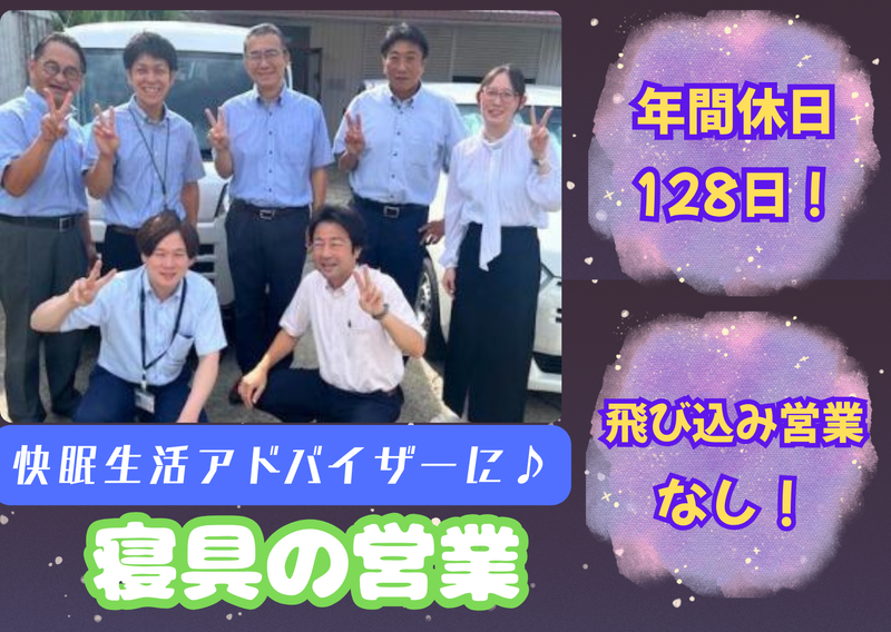 職種/仕事内容 | 仕事内容 ⭐まさに一石二鳥の働き方ができる⭐ メインは営業としてのお仕事をおまかせ! 睡眠に関して学びながら働けますよ♪ 「睡眠健康指導士」資格もGetできちゃう✨ -------------------- ⭐「快眠生活アドバイザー」とは・・・・ -------------------- <睡眠の質を向上>を目的として、お客様 一人ひとりに合わせた睡眠のアドバイスを 行うお仕事です。 また、お悩みに合った寝具の提案・販売も 行います。睡眠に関する知識のニーズは、 近年高まりつつあるんですよ♪ -------------------- 学校や病院、官公庁、介護施設などを 訪問して、寝具の販売をしていただきます。 <1日2件程度> 携帯電話やiPad、携帯プリンタ等は貸与有◎ 未経験でスタートしやすいお仕事です。 実際に弊社では、未経験から始めた スタッフが多数活躍しています! 焦らずゆっくり慣れていき、長く安定して 続けられるのがこのお仕事のポイント◎ 働きやすさにはきちんと理由があります✨ -------------------- ⭐働きやすさのそのワケは・・・・ -------------------- ✅飛び込み営業ナシ! 既存のお客様とのお取引なので アポイントが取りやすく安心です◎ ✅週休二日制(基本土日祝休み) 休日がしっかり確保できるので ゆっくり休めてプライベートも充実☆ ✅未経験でも活躍できる 丁寧な研修があるので安心して働けます! さらに経験に関わらず月給29万5000円~start★ ✅福利厚生が充実! ライフプラン手当や住宅手当、食事手当など 従業員の働きやすい環境を整えています! -------------------- このように働きやすい条件が充実✨ 未経験のアナタもぜひ挑戦してみませんか♪ |