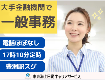 職種/仕事内容 | 仕事の内容 \大手の穏やか環境×事務ワーク♬/ ◆17時10分定時&残業少なめ ◆@1720円!収入も自分時間もバランス良く働ける ◆最新の自社システムあり!事務スキルUPも叶う〇 @豊洲駅スグ 【基本情報】 雇用形態:派遣社員 雇用期間:長期(3カ月以上) 1月~開始日相談可能 就業時間:8:50~17:10(休憩55分) 【必須条件】 ◆一般事務のご経験がある方 ◆パソコン:エクセル(入力~SUM関数) 【お仕事内容】 ・伝票作成 ・データ入力 ・照合~集計 ・リスト作成~検証(Excelやインターネット利用) など ◆電話対応はほとんどありません! └社内連絡は社内システムチャットがメイン 【環境面等】 ・@豊洲駅スグ/最寄り駅から徒歩1分 ・大手金融機関です ・20代・30代・40代・50代の多い職場 └幅広い年代活躍中/派遣スタッフ活躍中 ・ブランク活躍中! ・穏やかで落ち着いた雰囲気 ・オフィスカジュアル内で服装自由 【福利厚生等】 ・ランチタイムは休憩スペース利用OK └お弁当持参OKです ・社会保険完備 ・禁煙オフィス!煙苦手な方も安心 ・平日のみOK!土日祝休み ・年間休日120日以上&お休み相談可 └有給休暇 ○●嬉しいPOINTたくさん!●○ 履歴書不要!開始日相談OK/長期/駅チカ/駅歩5分以内/主婦・主夫活躍中/ブランクOK/社保完備/残業月10時間以内/17時10分退社/8時間以内勤務 |