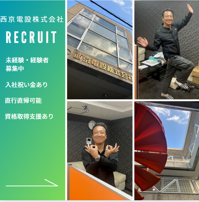 勤務地 | 西京電設株式会社 733-0037広島県広島市西区西観音町18-18 西京電設ビル |
