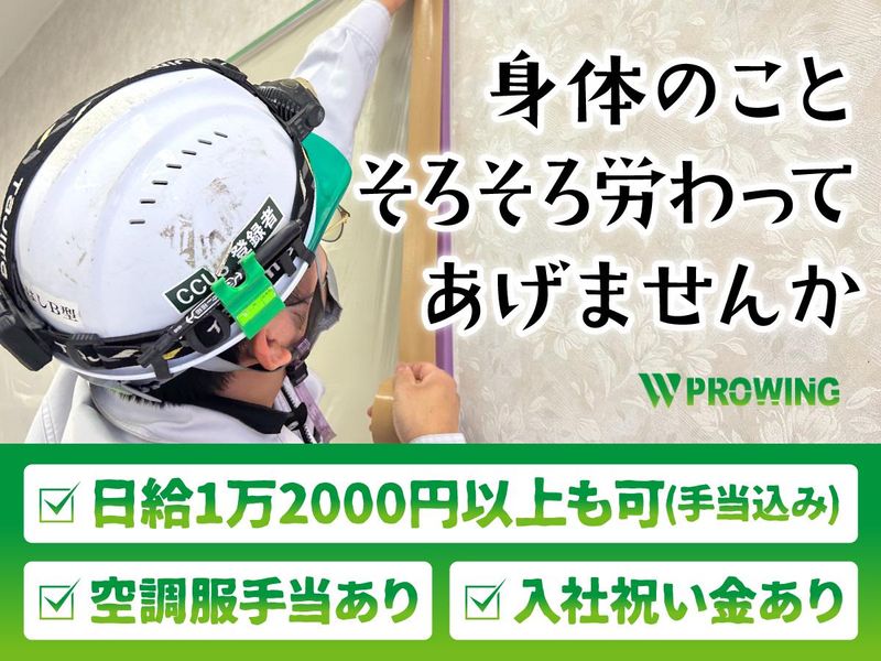職種/仕事内容 | 仕事内容 ******************** ✅業績好調◎設立28周年を迎えた安定企業 ✅養生とクリーニングのシンプルな作業 ✅「曜日の固定」や「週6日勤務」も可能! ✅経験者は日給1万1500円!入社祝い金もあり!日払い当日振込もOK ******************** 現場作業は好きだけど、 力仕事はそろそろしんどくなってきた… そんな、身体に不安を抱える方や、 長く働ける仕事を探している方にこそ おススメしたいのが「養生」のお仕事! 重い資材や道具を運んだり、 真夏の炎天下や真冬の極寒の中、 外で作業するようなこともありません◎ それでいて日給は1万1500円! 気になったら一度、お話してみませんか? ●応募の動機は「なんとなく」でOK!  ̄ ̄ ̄ ̄ ̄ ̄ ̄ ̄ ̄ ̄ ̄ ̄ ̄ ̄ ̄ ̄ ̄ ̄ ̄ ̄ 今の現場仕事よりも稼げそうだから。 自分でもできそうだったから。 など、応募する際の志望動機はなんでもOK。 そもそも、最初からこの仕事にものすごく 興味を持つ人のほうが少ないはずです。 友達に誘われてなんとなく バイトとして入社したけど、 今は正社員で活躍中という先輩もいるほど、 温かい人間関係も特徴です◎ 今の経験をうちでもいかしてみませんか? ●改めて養生(ようじょう)とは?  ̄ ̄ ̄ ̄ ̄ ̄ ̄ ̄ ̄ ̄ ̄ ̄ ̄ ̄ ̄ ̄ ̄ ̄ ̄ ̄ 引っ越しの際、通路やマンションの エレベーターの壁などに、板やシートが 貼られているのを見たことありませんか? あれが養生。壁や床などを他の作業による 汚れや傷から守る作業のことを指します。 私たちが請け負っているのは主に 新築や改修工事の際の養生作業。 先に完成した部分を保護するために、 床や壁にシートなど貼っていく作業です。 ●道具は日常で使うものばかり!  ̄ ̄ ̄ ̄ ̄ ̄ ̄ ̄ ̄ ̄ ̄ ̄ ̄ ̄ ̄ ̄ ̄ ̄ ̄ ̄ 使用するのはハサミやカッターなど 日常で使用するものばかり。 専門器具は使用しないので、 特別な経験や知識は一切要りません◎ 現場のクリーニング作業もありますが、 こちらもゴミを掃いたり、ガラスを拭いたり などの基本的な清掃業務なので 誰でもすぐに覚えられますよ。 |